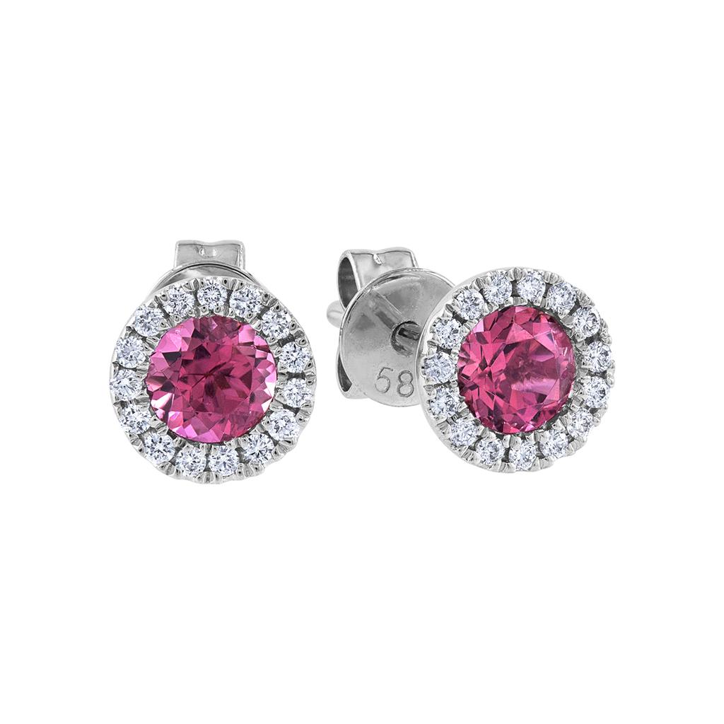 LLaViano Fashion 14K White Gold Pink Tourmaline and Diamond Earrings