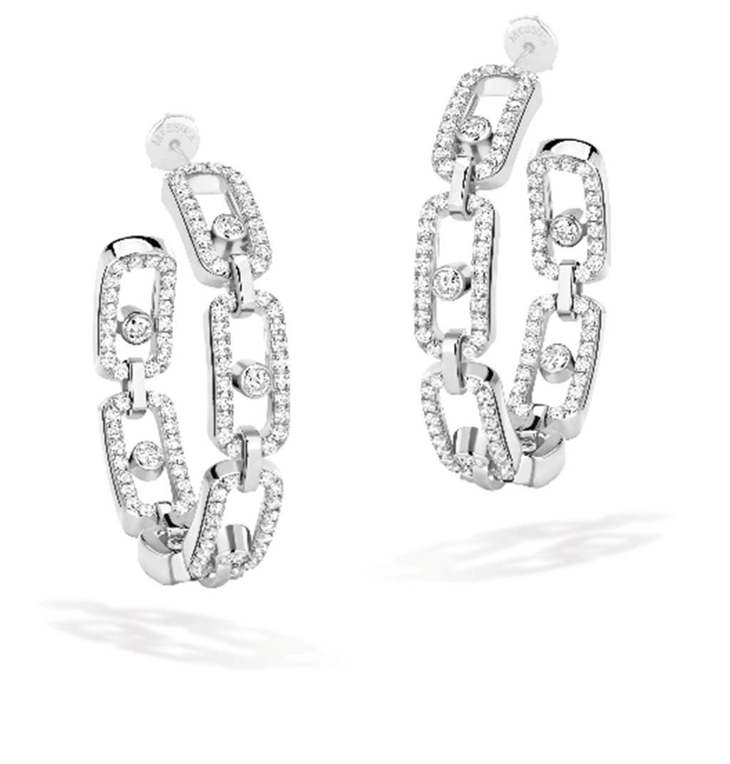 Messika 18K White Gold Move Link Small Hoop Earrings 208 Diamonds .88 Carats