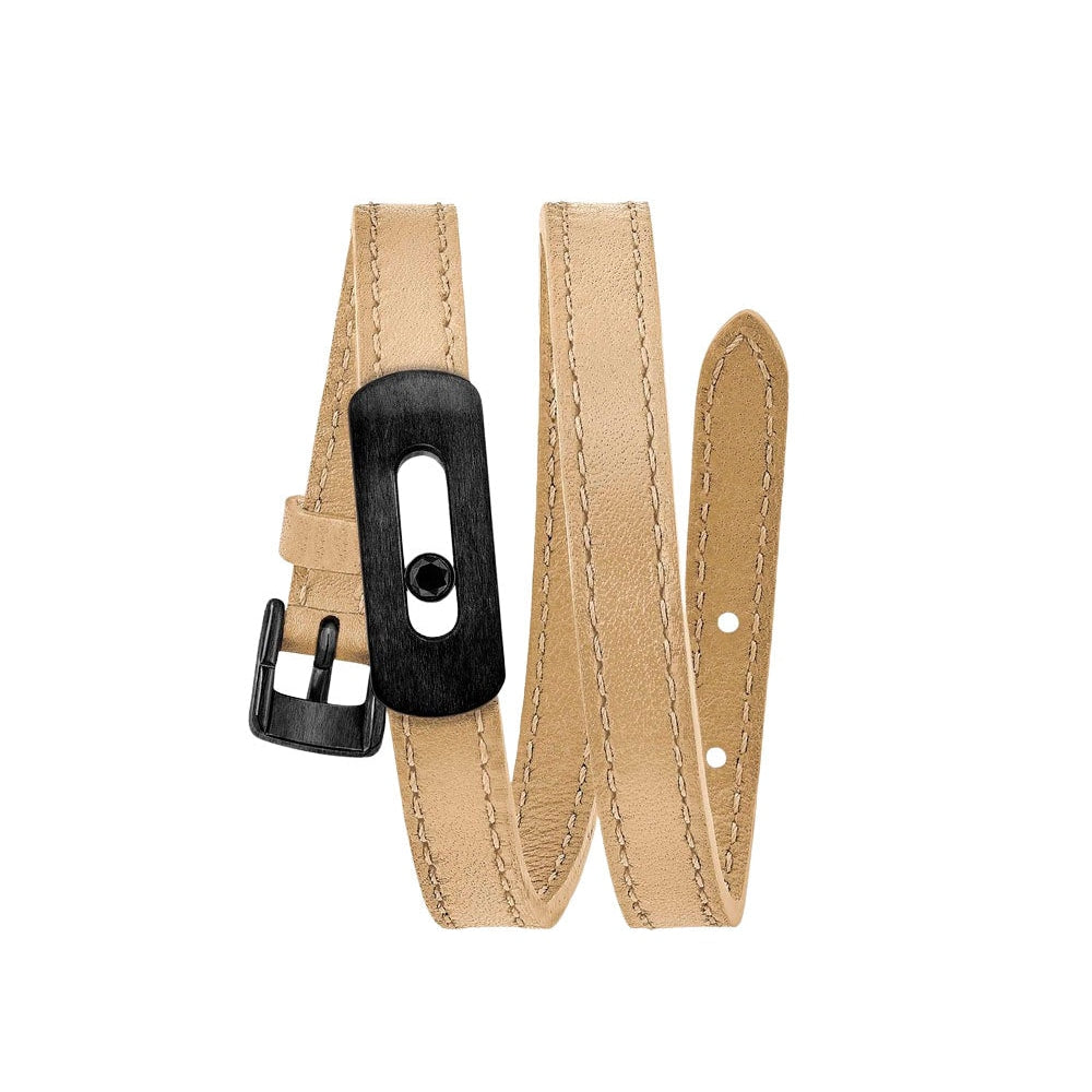 The Graphite Titanium "My Move" diamond motif bracelet from MessikaΒ features one round brilliant cut diamond weighing approximately 0.09 carats.Β Featured on the beigeΒ calfskin strap – the strap is sold separately.