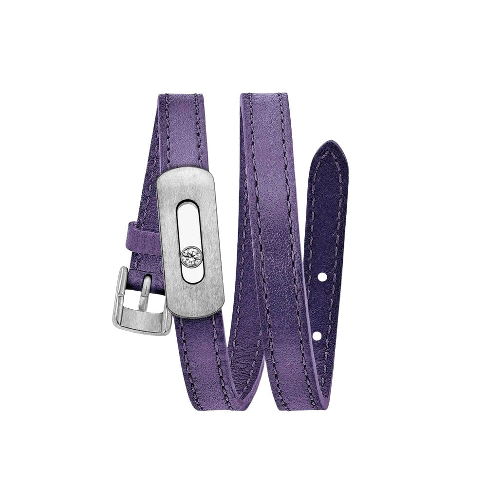 The Graphite Titanium "My Move" diamond motif bracelet from MessikaΒ features one round brilliant cut diamond weighing approximately 0.07 carats.Β Featured on the purple calfskin strap βΒ the strap is sold separately.