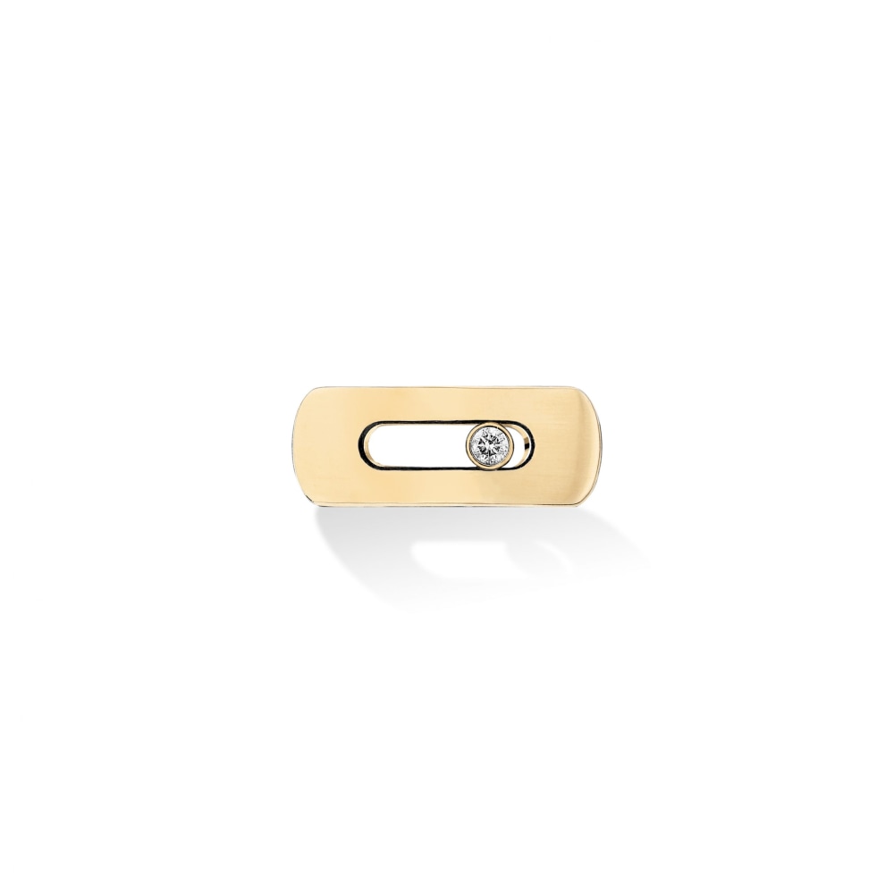 18K yellow gold "My Move" diamond motif bracelet featuring one round brilliant cut diamond weighing approximately 0.08 ctw. The motif is featured on the China Blue calfskin strap. Messika offers an array of beautifully colored straps to pair with their "My Move" Motifs. The strap is sold separately.Β