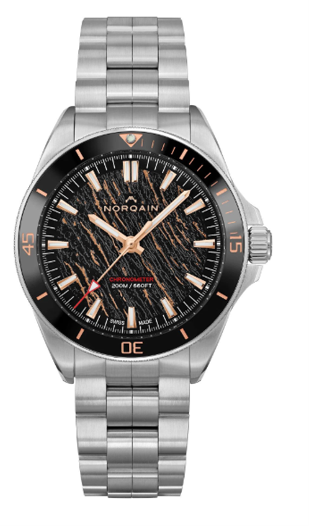 Norqain Neverest Glacier Stainless Steel Case Black Glacier Dial With Golden Cracks Inspired By Crevasse On Mt. Everest Mechanical Automatic Movement 40mm NN1001SC1CA/BG103/150SS