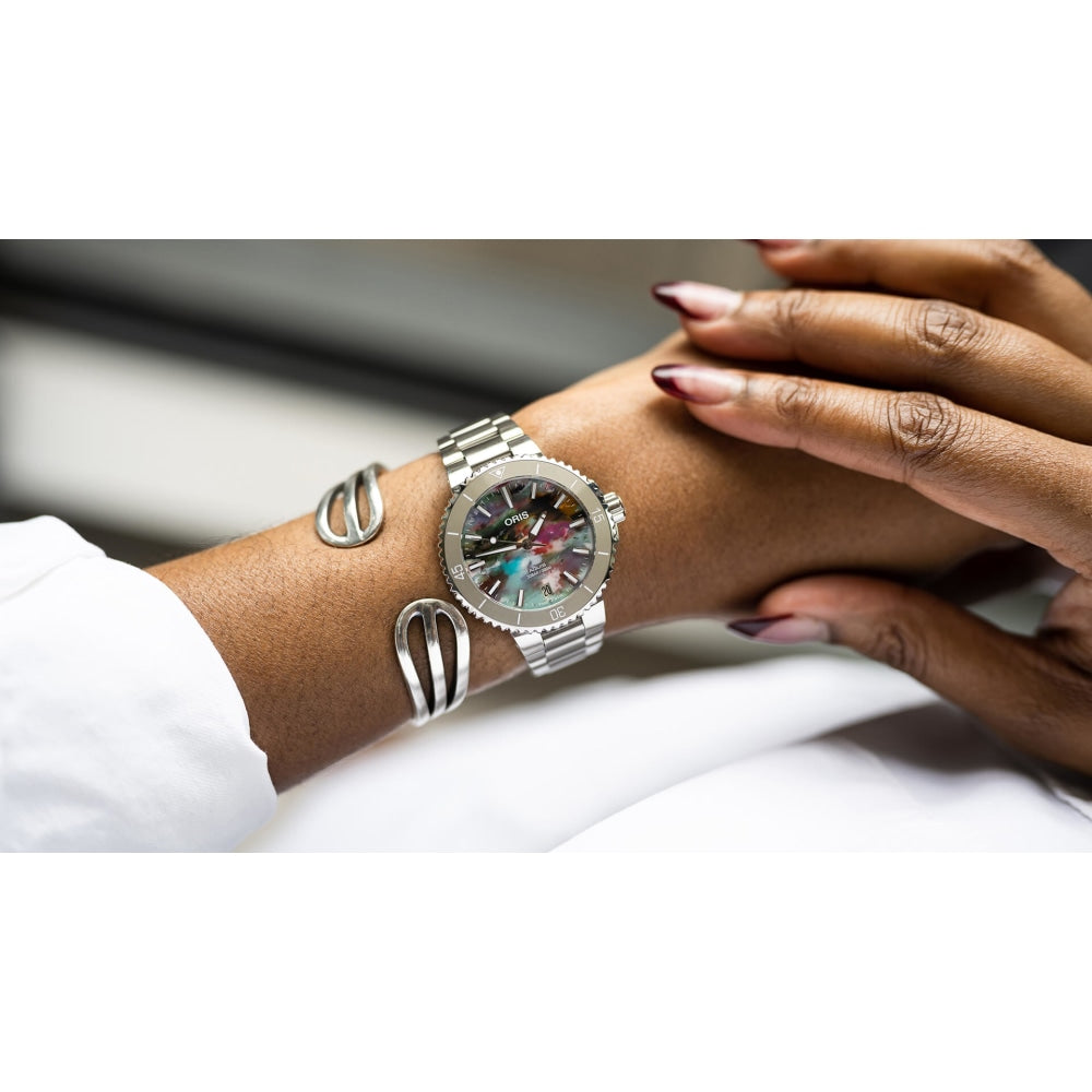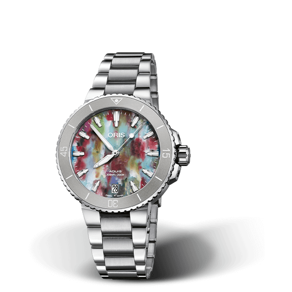 The watch, which is available with either a 41.5 mm or 36.5 mm case, is particularly special. The PET plastic recycling process produces random patterns, meaning no two dials are the same. In effect therefore, each piece is unique. Weβre not limiting either size, and weβll keep making them for as long as thereβs demand. Our hope is that our customers will choose Aquis Date Upcycle and join us in making a daily commitment to reducing the worldβs ocean plastic crisis.