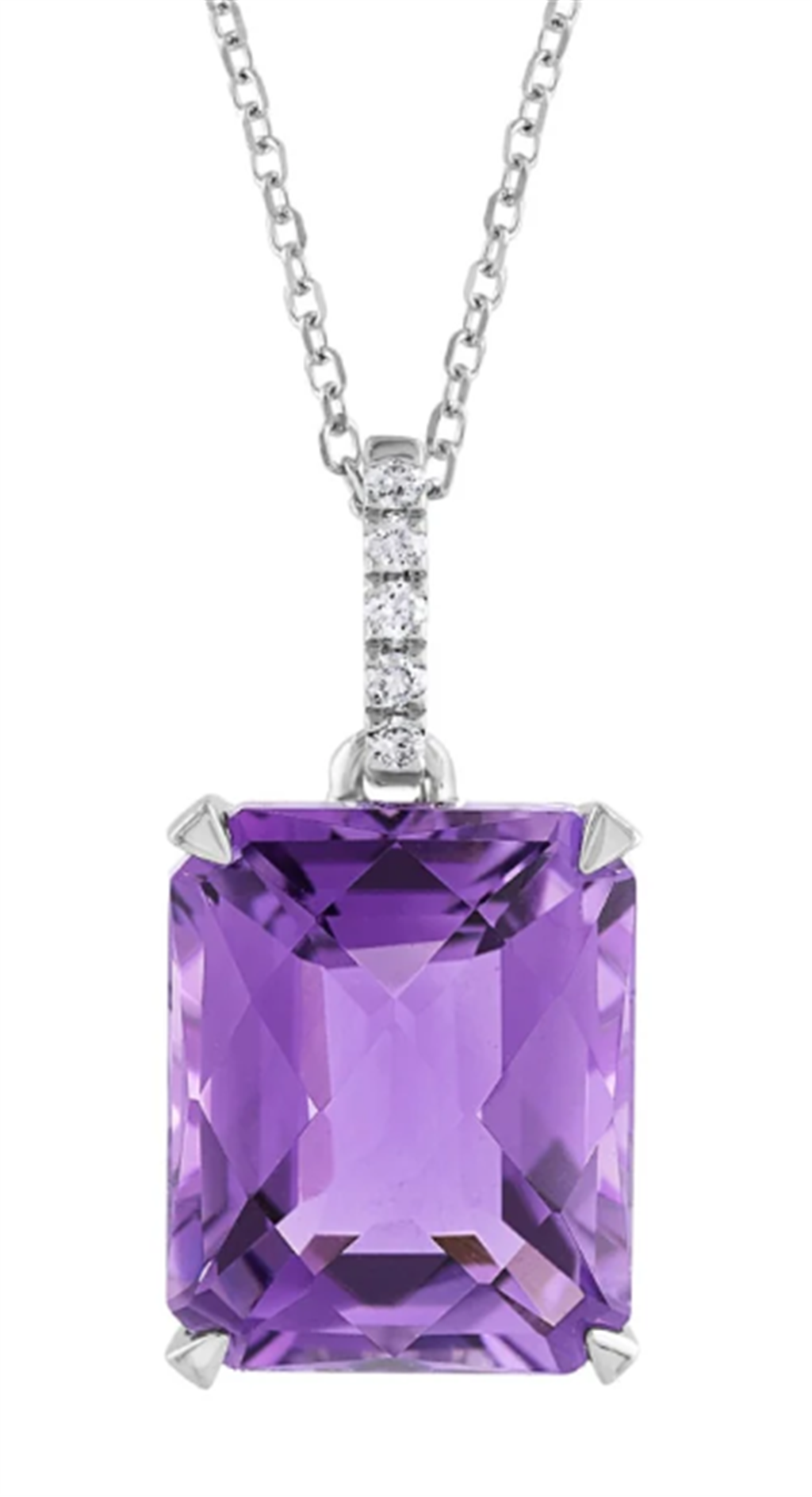 Pe Jay Creations 14K White Gold Amethyst and Diamond Necklace