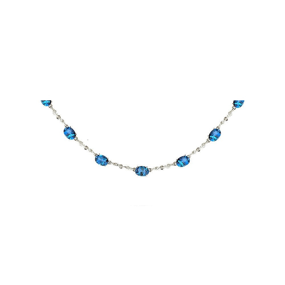 Pe Jay Creations 14K White Gold Blue Topaz and Diamond Necklace