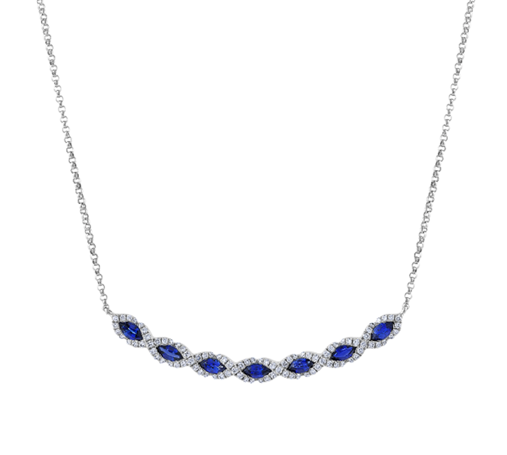 Pe Jay Creations 14K White Gold Diamond and Sapphire Necklace