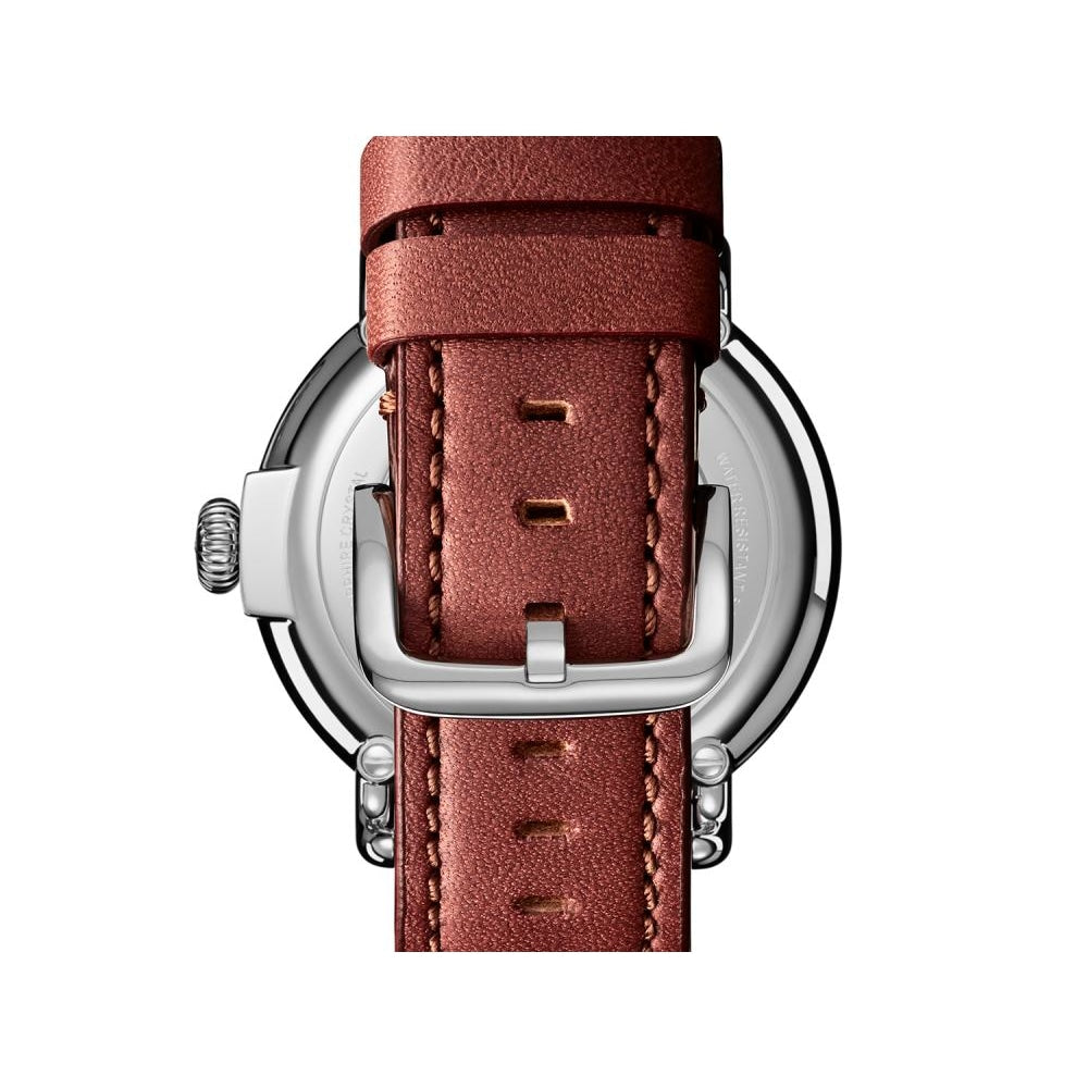 You've been waiting, we've been working, and now the Runwell Automatic is finally here. Meet our flagship, now with the heart of an automatic and a refined design that was years in the making. It's a major evolutionary moment for the timepiece that launched the Shinola brand. Recognizable but refreshed with thoughtful details, including microtracking, a richly-printed dial and an iconic caseback with a window into the inner workings of its workhorse movement, the Sellita SW200-1. Featuring a glossy midnight blue enamel dial and a premium leather strap in dark cognac, this heirloom-worthy timepiece is the epitome of the brands commitment to quality craftsmanship that refuses to be ignored.