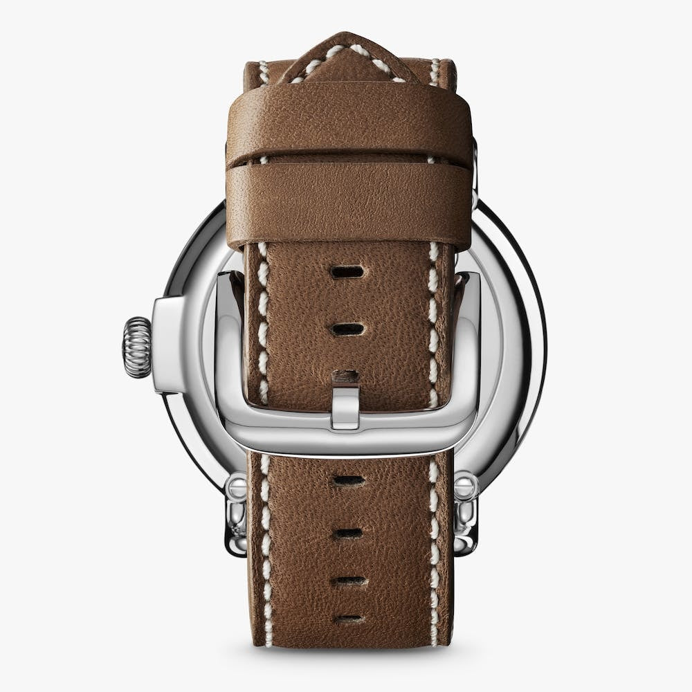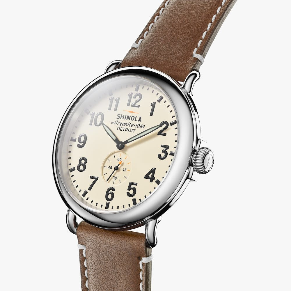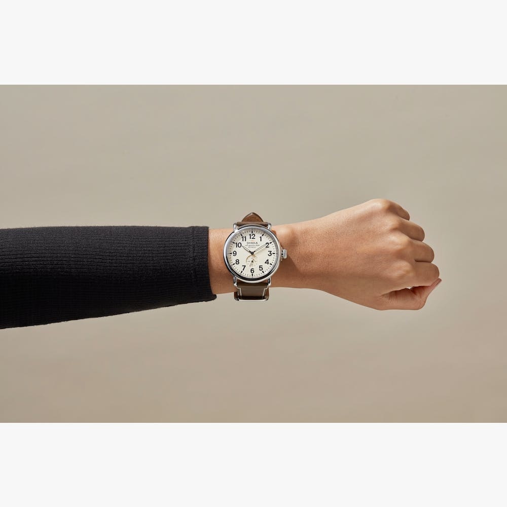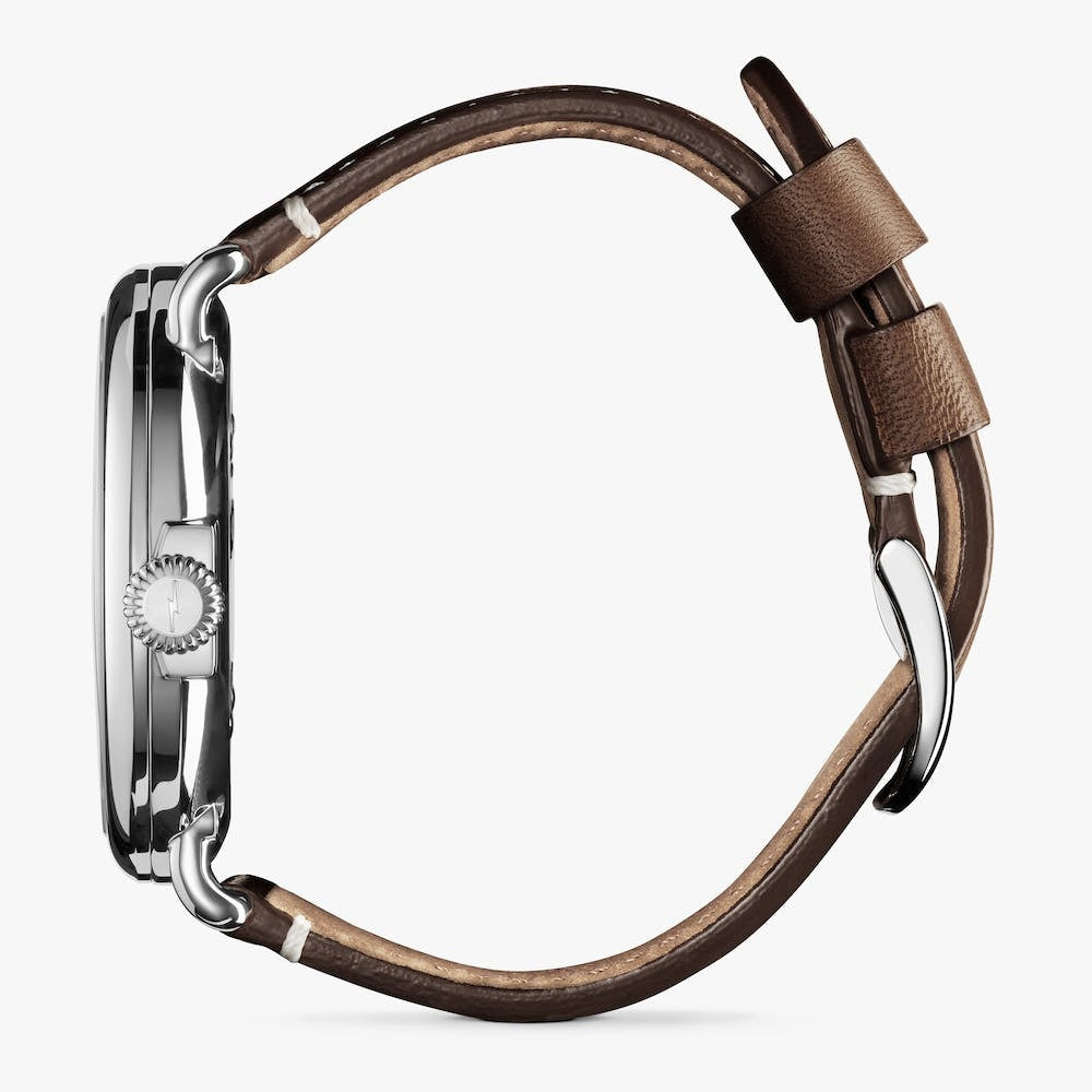 Built to last, and named accordingly, every detail of The Runwell was engineered with an obsessive focus to ensure the highest possible quality. The Argonite 1069 high-accuracy movement is the powerful motor behind this Cream dial and sub-second. The polished stainless steel case is accentuated by a classic pumpkin crown while Dark Nut Brown leather straps compliment the refined dial handsomely. A good watch not only tells time, it sets the tone for your whole day.