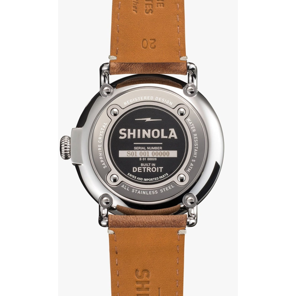 Built to last, and named accordingly, a timepiece built for life from the finest components available in the world. Features of The Runwell include a sapphire crystal, Super-LumiNova printed dial details, and a solid stainless steel case with screw down crown. Two hands and remote secondhand sweep are driven by Shinola's Argonite 1069 high-accuracy quartz movement. From the laser-etched case back to the etched lightning bolt on the buckle, every detail of The Runwell has been engineered with an obsessive focus to ensure the highest possible quality.