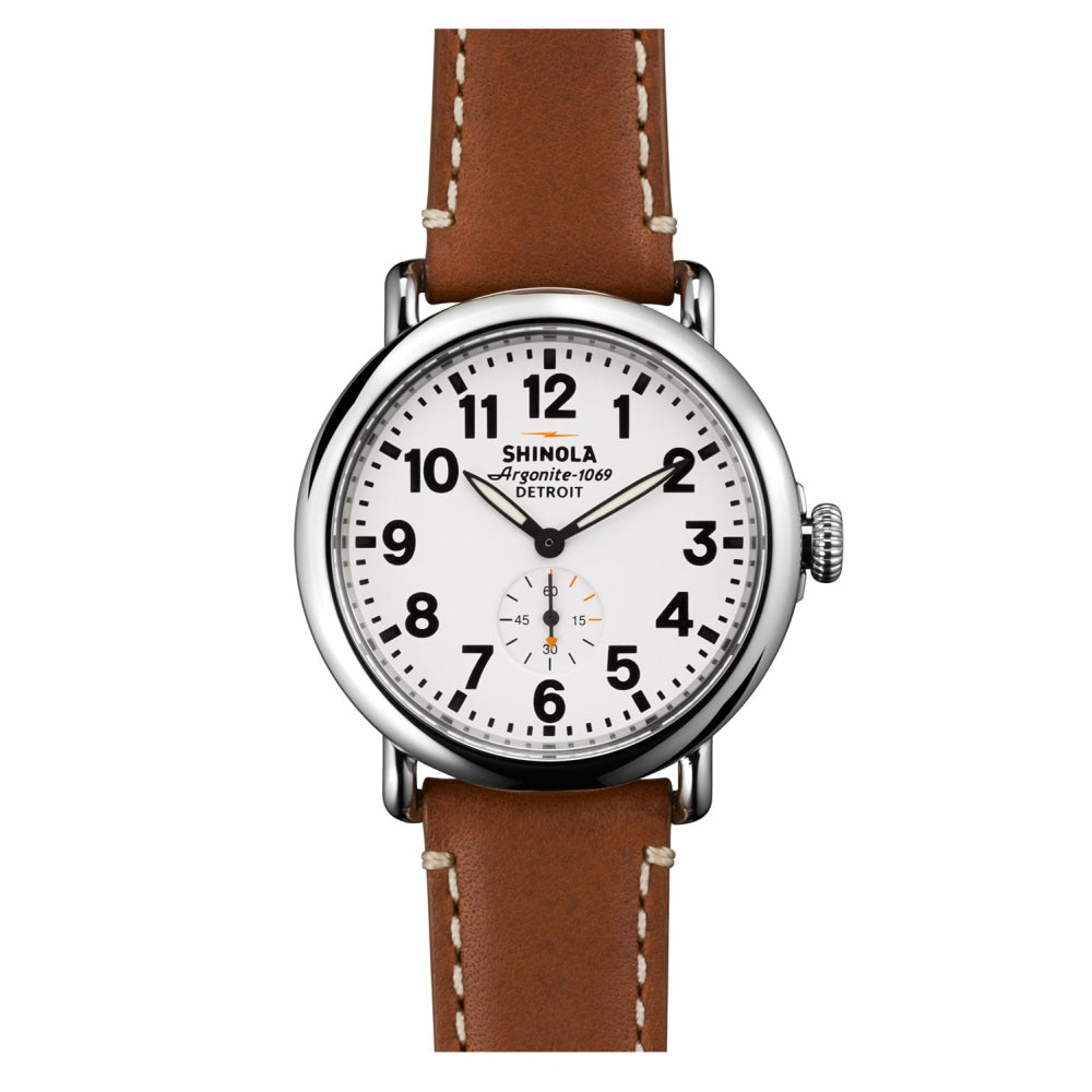 Shinola The Runwell White Dial Tan Leather Strap Watch, 41mm S0110000109