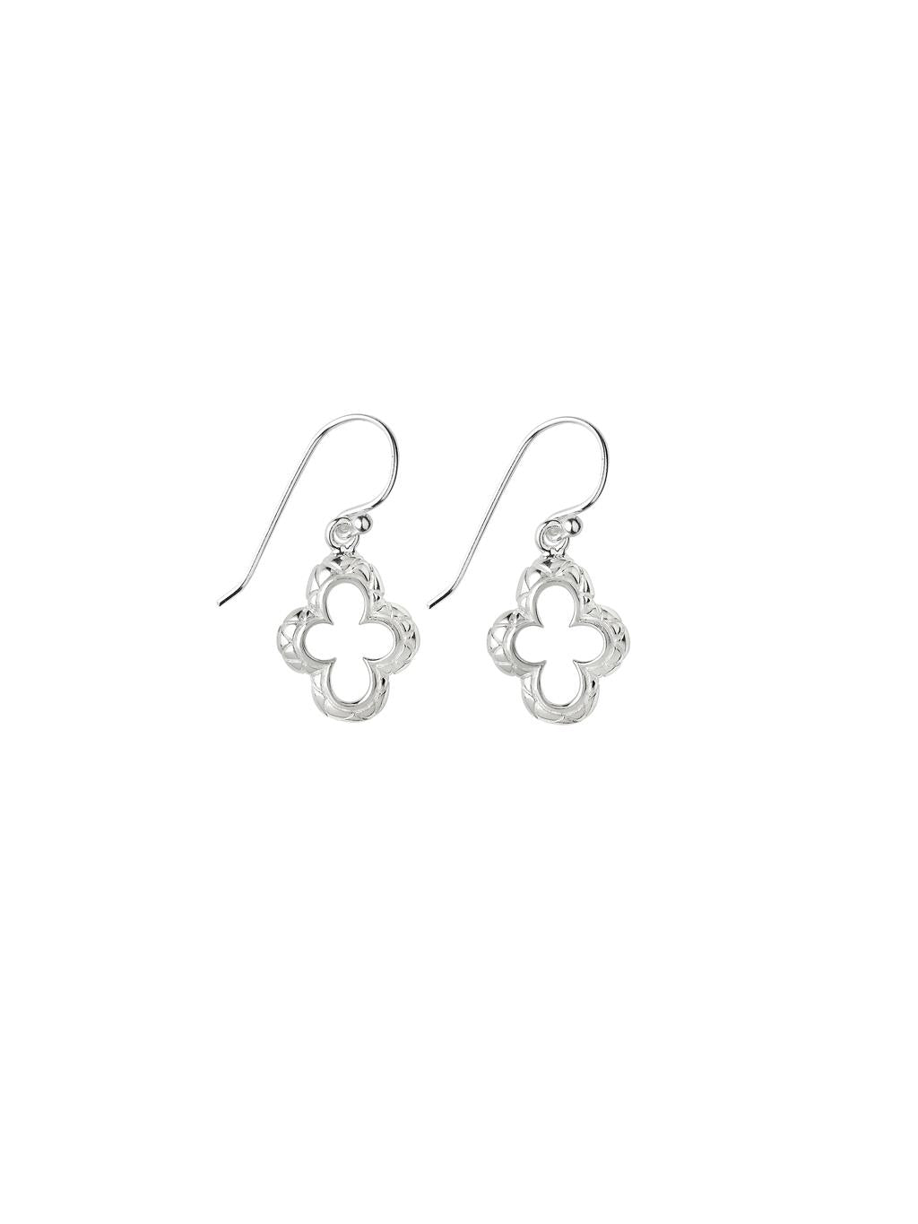 Sterling Silver Small Quilted Quatrefoil Dangle Earrings on Wire ; ;