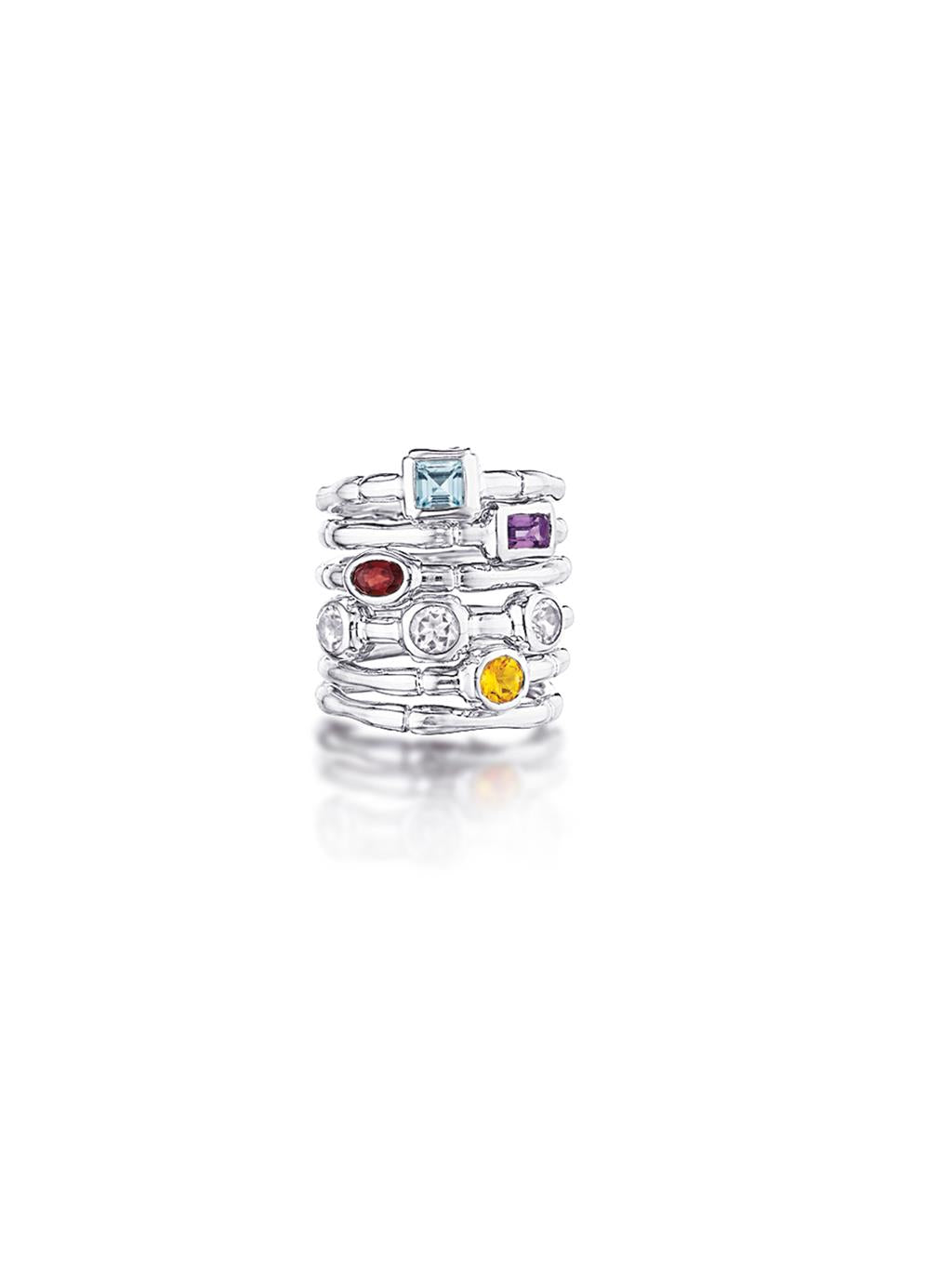 Sterling Silver Stackable Bamboo Ring with Facated Citrine ; ;