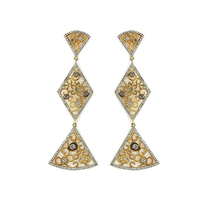 Tanya Farah 18K Yellow Gold and Multi-Diamond Neo-Classical Geisha Dangle Earrings