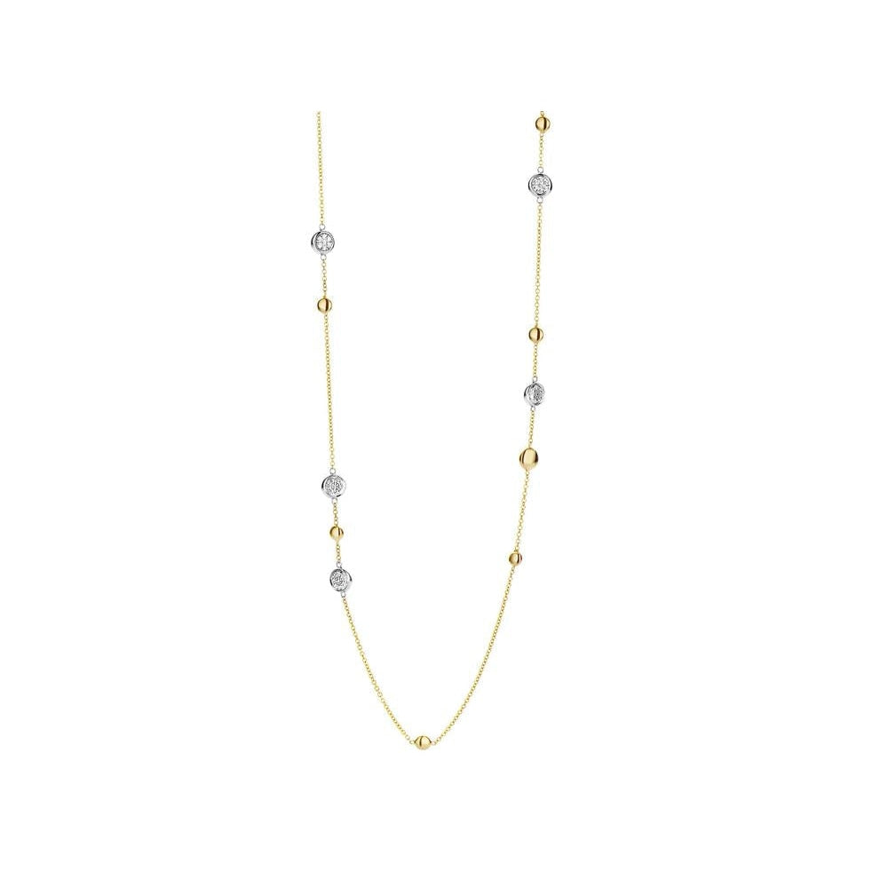 Tirisi Jewelry station two-tone necklace features 18K yellow gold stations and 18K white gold stations with white diamonds 0.56 Carats