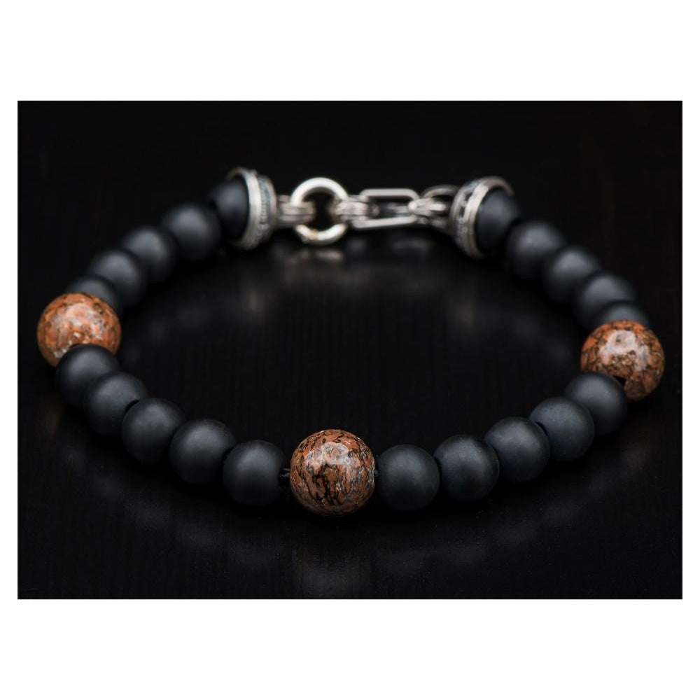 William Henry Sterling Silver Onyx & Brown Beaded Bracelet